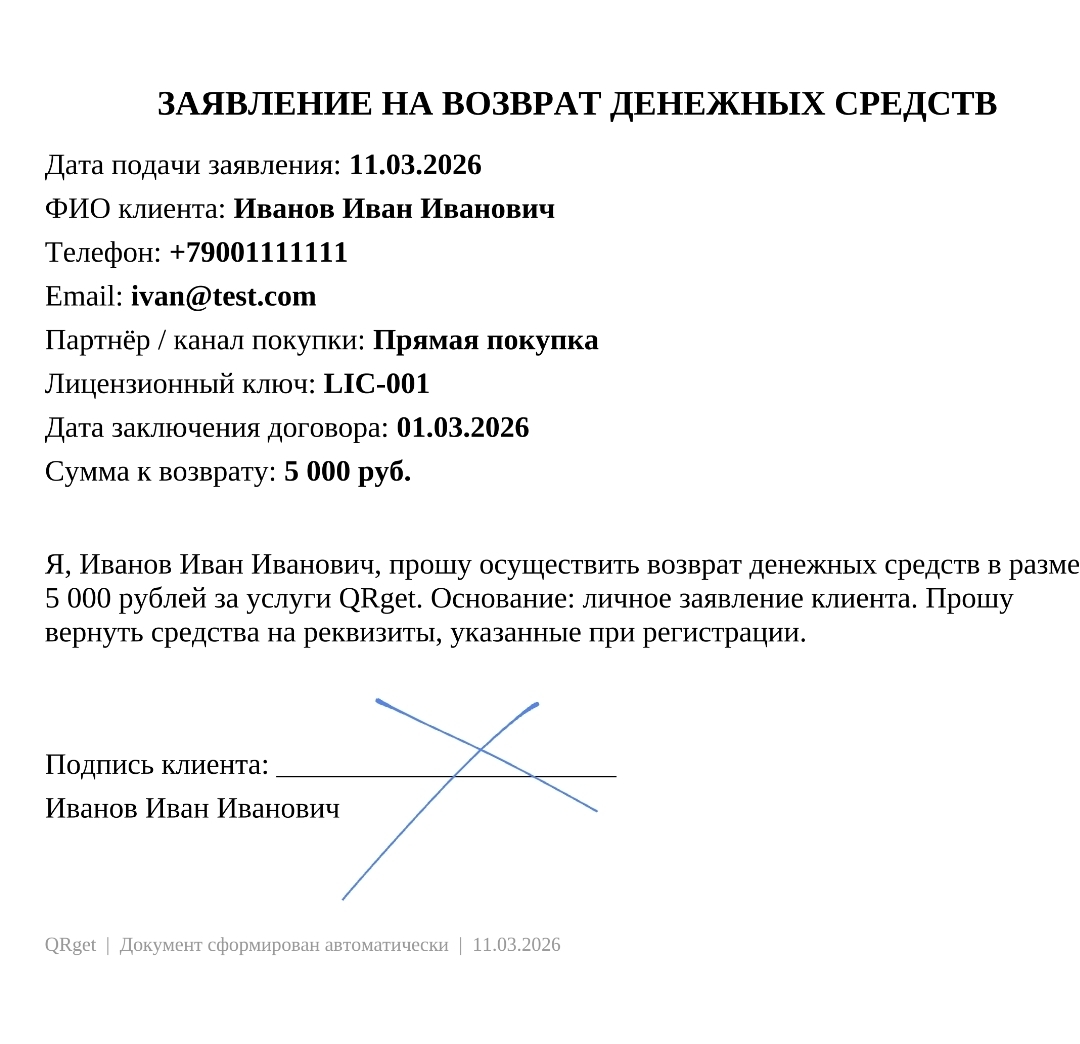 Заявки на возврат